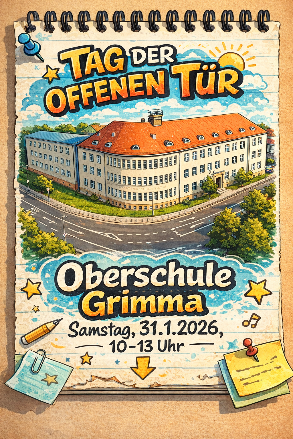 Jan Eric Dörr2026-01-22T21:02:43+01:00Am Samstag, den 31. Januar 2026, von 10 bis 13 Uhr laden wir Sie herzlich zu unserem Tag der offenen Tür ein! Nutzen Sie diese Gelegenheit, unsere vielfältigen und modernen Klassenzimmer zu entdecken, die unseren Schülerinnen und Schülern einen abwechslungsreichen Unterricht ermöglichen. Besichtigen Sie unsere Fachräume und erhalten Sie in unserer Schulchronik spannende Einblicke in die Geschichte und Entwicklung der Oberschule Grimma. Neben unserem breiten Fächerangebot möchten wir Ihnen auch unsere Ganztagesangebote vorstellen, darunter die beliebte Imker-AG und viele weitere kreative und sportliche Aktivitäten. Unsere Schule ist zudem stolz darauf, als einzige Schule in Sachsen Musik- und Sportförderklassen anzubieten, [weiter lesen]